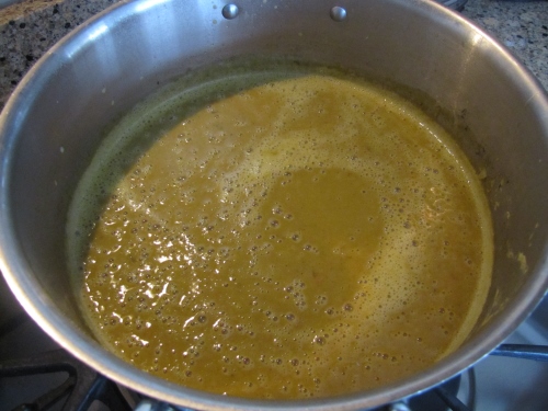 Another thing I do when making a hearty soup like this is to make sure I have a nice crusty loaf of bread on hand. For this soup, I chose a delicious rosemary olive bread. Before eating our soup, I sliced up half of the loaf of bread. I took two slices of that bread and made fresh croutons using olive oil. My preference in using extra virgin olive oil in my soup and for the croutons is simple. Extra virgin olive oil tastes wonderful, but more importantly, it is so healthy for you! Who would complain about using something that is heart healthy and adds wonderful flavor? Not me, so here is my recipe for my Split Pea Soup…A Delicious Way to Warm Up! And don’t forget, I will give you the simple directions to make fresh croutons for your soup!