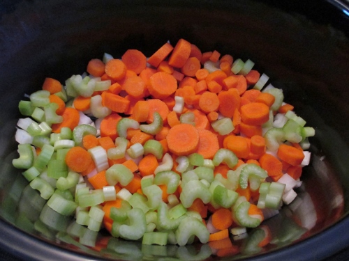 Put the olive oil in the bottom of the crock pot. Cut up, slice, and prepare your ingredients. Then throw in the onions, garlic, carrots, celery, sliced mushrooms, and cut up chicken breasts. Add broth and seasonings next. Cover the crock pot and set to cook for 6 to 8 hours. When done, serve your soup.